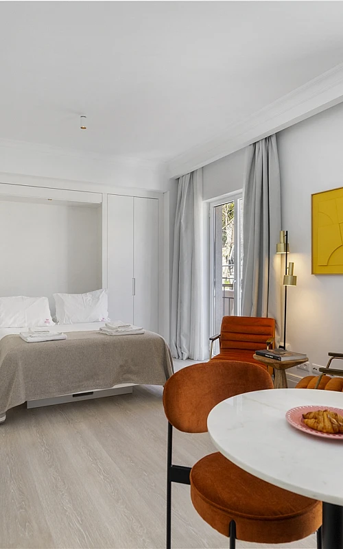 An impeccable studio, decorated in warm and enveloping colors with different areas: sleep, chill out, and kitchen if you feel like preparing some homemade food inspired in portuguese recipes. Three keys for total comfort and a pleasant stay.